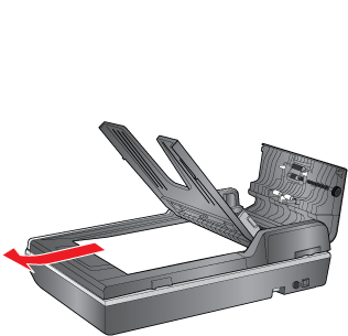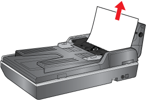 Elakad a papír az automatikus lapadagolóban.Ha elakad a papír az automatikus lapadagolóban, akkor nyissa fel azt, és távolítson el minden papírlapot a dokumentumasztalról. Ezután figyelje meg, hogy nem áll-e ki papír az adagoló bármelyik végéből.