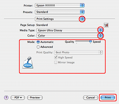 Nyomtatóbeállítások, Mac OS X 10.3 vagy 10.4