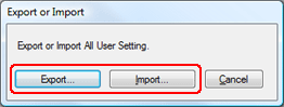 A megadott beállításokat fájlként exportálhatja vagy importálhatja.