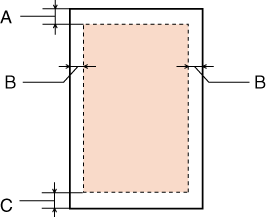 A kiemelt részek mutatják a nyomtatható területet.