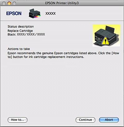 ![]() Ha kevés vagy kifogy a tinta, megjelenik egy How to (Hogyan) gomb. Ha rákattint az How to (Hogyan) gombra, az EPSON StatusMonitor lépésenként végigvezeti a patroncsere folyamatán.