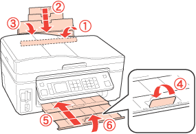 Hajtsa vissza az adagoló védőt, majd csukja le a papírtámaszt és a kiadó tálcát.