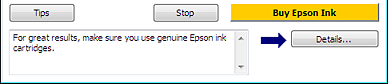 SuggerimentiNella casella di testo della finestra della barra di avanzamento vengono visualizzati suggerimenti per sfruttare al meglio il driver della stampante Epson. Per informazioni dettagliate sul suggerimento visualizzato nella finestra, fare clic sul pulsante Details (Dettagli).