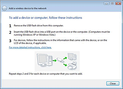 Fare clic su I want to add a wireless device or computer that is not on the list, using a USB flash drive (Voglio aggiungere un dispositivo wireless o un computer che non è nella lista, usando un'unità flash USB).