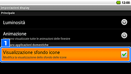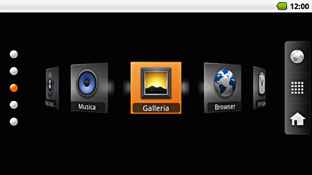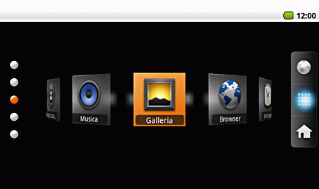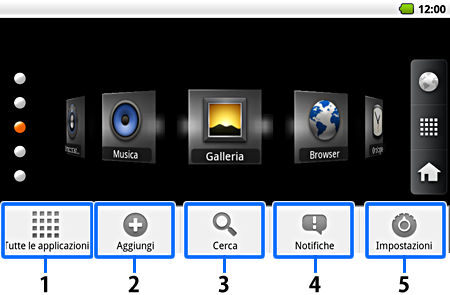 1 Tutte le applicazioni: consente di visualizzare tutte le applicazioni installate. 2 Aggiungi: consente di aggiungere un collegamento alla schermata principale. 3 Cerca: consente di visualizzare la schermata Cerca. 4 Notifiche: consente di visualizzare la schermata Notifiche. 5 Impostazioni: consente di visualizzare il menu Impostazioni.