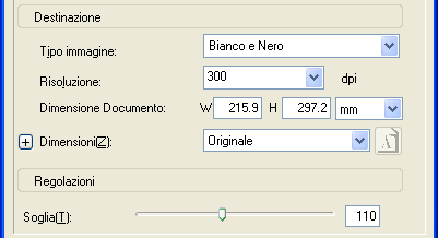 Per definire le impostazioni appropriate per la scansione di testi e disegni al tratto nel modo Professionale, attenersi alla procedura che segue. Tramite questa funzione, i contorni del testo e dei disegni al tratto vengono acquisiti e definiti in modo preciso. I testi definiti in modo preciso possono essere convertiti con affidabilità in dati di testo tramite il software OCR di riconoscimento ottico dei caratteri. Per informazioni dettagliate, vedere Scansione di documenti per la conversione di dati di testo (OCR).