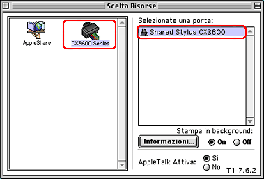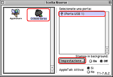 Scegliere Scelta Risorse dal menu Apple. Fare clic sull'icona relativa a questo prodotto e selezionare la porta della stampante che si desidera utilizzare dall'elenco Seleziona una porta.