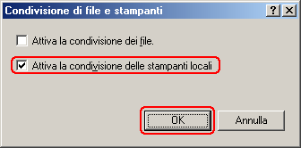Selezionare la casella di controllo Attiva la condivisione delle stampanti locali e fare clic su OK.