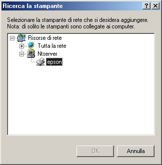 Fare clic su OK. Il nome della stampante condivisa appare nell'elenco delle porte di Scelta Risorse.