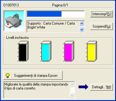La finestra di dialogo Barra di avanzamento appare automaticamente quando si invia un lavoro di stampa a questo prodotto. Da questa finestra di dialogo è possibile controllare la quantità di inchiostro rimanente.