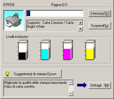È possibile annullare la stampa utilizzando la barra di avanzamento o EPSON Spool Manager. Fare riferimento alla sezione appropriata riportata di seguito.