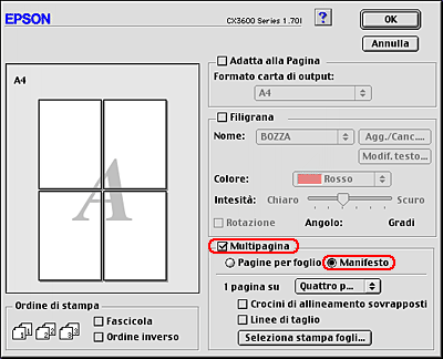 Permette di stampare immagini dal formato manifesto; a tal fine, una pagina viene ingrandita per coprire un certo numero di fogli.
