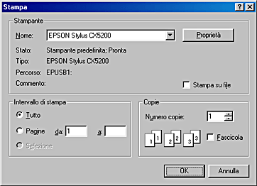 Nella finestra di dialogo che appare, fare clic su Stampante, Imposta, Opzioni o Proprietà. (A seconda dell'applicazione, può essere necessario fare clic su una combinazione di questi pulsanti.) Si aprirà la finestra del software della stampante.