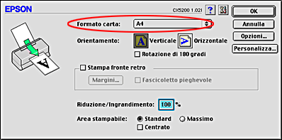 Scegliere Formato di Stampa dal menu Archivio dell'applicazione.