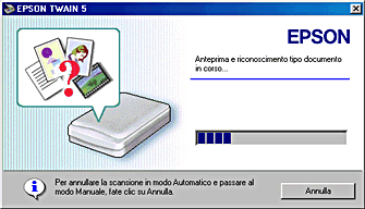 Con EPSON TWAIN sono disponibili due modi di scansione: il modo Automatico e il modo Manuale. È possibile passare agevolmente da un modo all'altro, come descritto di seguito.