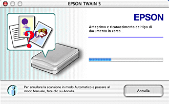EPSON TWAIN visualizza automaticamente in anteprima le immagini, ne riconosce il tipo, ottimizza le immagini e quindi avvia l'acquisizione.