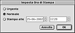 Fare clic sul pulsante ad icona nella finestra Desktop Printer. Si aprirà la finestra di dialogo Imposta Ora di Stampa.