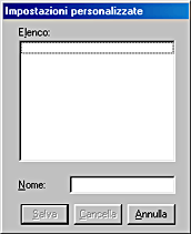Per cancellare un'impostazione dall'elenco Impostazioni personalizzate, selezionarla nella finestra di dialogo Impostazioni personalizzate e fare clic su Cancella.
