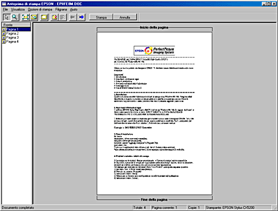 Quando si invia un lavoro di stampa alla stampante, si aprirà la finestra Anteprima di stampa EPSON, che consente di effettuare cambiamenti prima della stampa vera e propria.