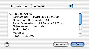 Scegliere Formato di Stampa dal menu Archivio dell'applicazione. Apparirà la finestra di dialogo Formato di Stampa.