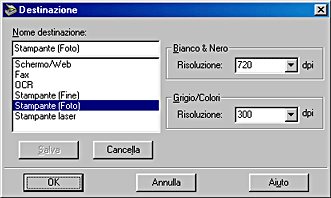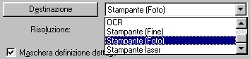 Se le immagini acquisite con lo scanner vengono stampate con le impostazioni di qualità di stampa Economy, Normale o Super nel software della stampante, si consiglia di selezionare Stampante (Fine). Se si sta stampando con impostazioni di qualità di stampa Ultra o Foto, selezionare Stampante (Fine).