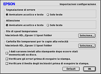 Scegliere il modo in cui EPSON StatusMonitor segnala all'utente il verificarsi di un errore. |