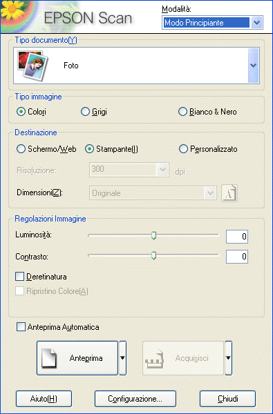 A seconda dell'immagine che si desidera acquisire, l'immagine risultante potrebbe non corrispondere a quella prevista. In questo caso, acquisire l'immagine nel modo Principiante o nel modo Professionale.