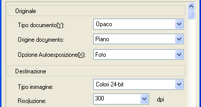 Specificare le impostazioni di Originale, Tipo immagine e Risoluzione corrispondenti alle immagini.
