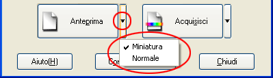 Quando si seleziona Foto come Tipo documento, è possibile selezionare un metodo di anteprima: Miniatura o Normale. Fare clic sulla freccia piccola sulla destra del pulsante Anteprima e quindi selezionare Miniatura o Normale.