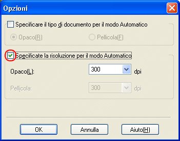 Selezionare la casella di controllo Specificare risoluzione per modo Automatico.