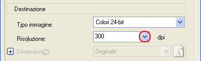 Selezionare 300 dpi dalla casella di riepilogo Risoluzione.