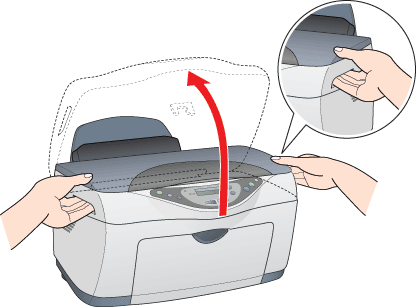 Assicurarsi che il coperchio documenti sia chiuso e quindi sollevare l'unità scanner.