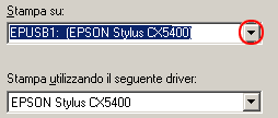 Se EPUSBX: (EPSON Stylus CX5400) appare nella casella di riepilogo Stampa su, significa che il driver della stampante USB e il software della stampante sono installati in modo corretto. Se non viene visualizzata la porta corretta, procedere al passaggio successivo.