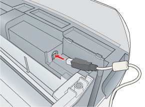 ![]() | Collegare il connettore del cavo USB (scollegato precedentemente da questo prodotto) alla porta USB di questo prodotto e quindi collocare il relativo cavo nell'apposita sede. |