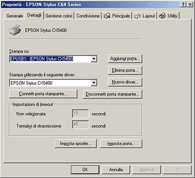 Se EPUSBX: (EPSON Stylus CX6400) appare nella casella di riepilogo Stampa su, significa che il driver della stampante USB e il software della stampante sono installati in modo corretto. Se non viene visualizzata la porta corretta, procedere al passaggio successivo.