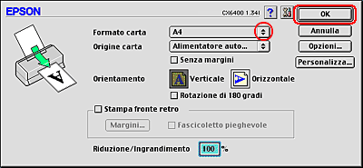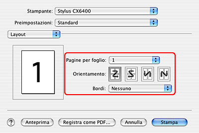 ![]() | Selezionare Stylus CX6400 come impostazione di Formato per. |