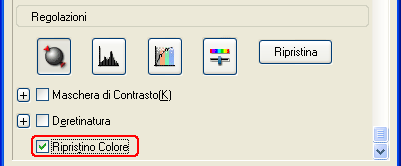Ripristino colori è una funzione del software dello scanner che ripristina i colori che risultano sbiaditi sulle foto. Selezionare la casella di controllo Ripristino colore per ripristinare il colore nel modo Principiante o nel modo Professionale.