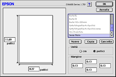 È possibile definire un formato carta personalizzato e aggiungerlo all'elenco dei supporti.