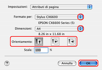 ![]() | Selezionare Stylus CX6600 come impostazione di Formato per. |