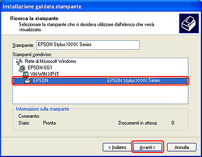 In queste istruzioni viene descritto come configurare la stampante in modo da poterla condividere con altri utenti della rete.