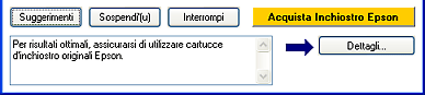 SuggerimentiNella casella di testo della finestra della barra di avanzamento vengono visualizzati suggerimenti per sfruttare al meglio il driver della stampante Epson. Ogni 30 secondi viene visualizzato un nuovo suggerimento. Per informazioni dettagliate sul suggerimento visualizzato nella finestra, fare clic sul pulsante Dettagli.