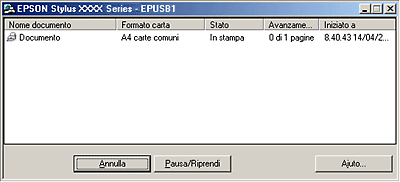 Dallo spool manager è possibile visualizzare informazioni di stato sui lavori di stampa inviati alla stampante. È possibile inoltre annullare, sospendere e riprendere lavori di stampa selezionati.