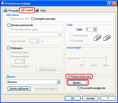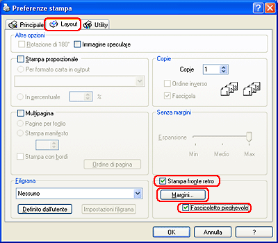 Questa funzione non risulta disponibile con la stampa senza margini.