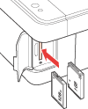 Caricare la scheda di memoria unicamente come mostrato sopra; in caso contrario, si rischia di danneggiare la stampante e/o la scheda di memoria. Se una scheda viene inserita in modo errato, verrà visualizzato un messaggio di errore. Fare clic su Cancel (Annulla), quindi rimuovere la scheda di memoria e inserirla correttamente.