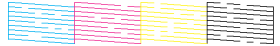 Se dalle righe stampate mancano alcuni segmenti (come illustrato di seguito), ciò può essere dovuto a un ugello d'inchiostro ostruito o a una testina di stampa non allineata.