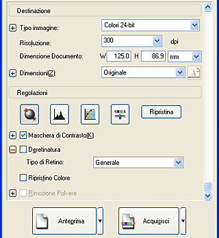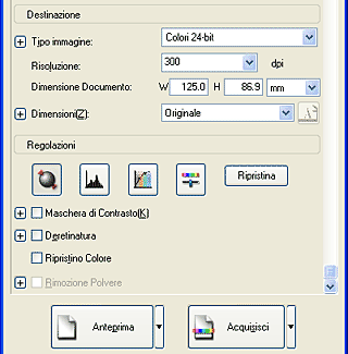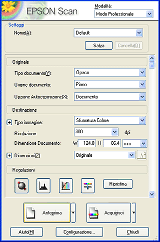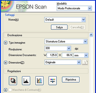 ![]() | Avviare EPSON Scan e quindi selezionare il modo Professionale. Per informazioni dettagliate sulla selezione di un modo di scansione, vedere Modifica del modo di scansione. |