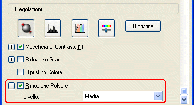È possibile utilizzare la funzione Rimozione polvere soltanto per la scansione di pellicole.