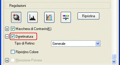 Selezionare la casella di controllo Deretinatura nella sezione Regolazioni.