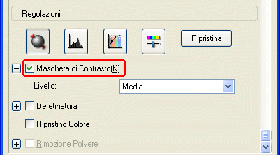 Selezionare la casella di controllo Maschera di Contrasto nella sezione Regolazioni.