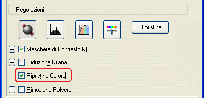Ripristino colore è una funzione dell'applicazione dello scanner che ripristina i colori che risultano sbiaditi su pellicole e foto. Selezionare la casella di controllo Ripristino colore per ripristinare il colore nel modo Principiante o nel modo Professionale.
